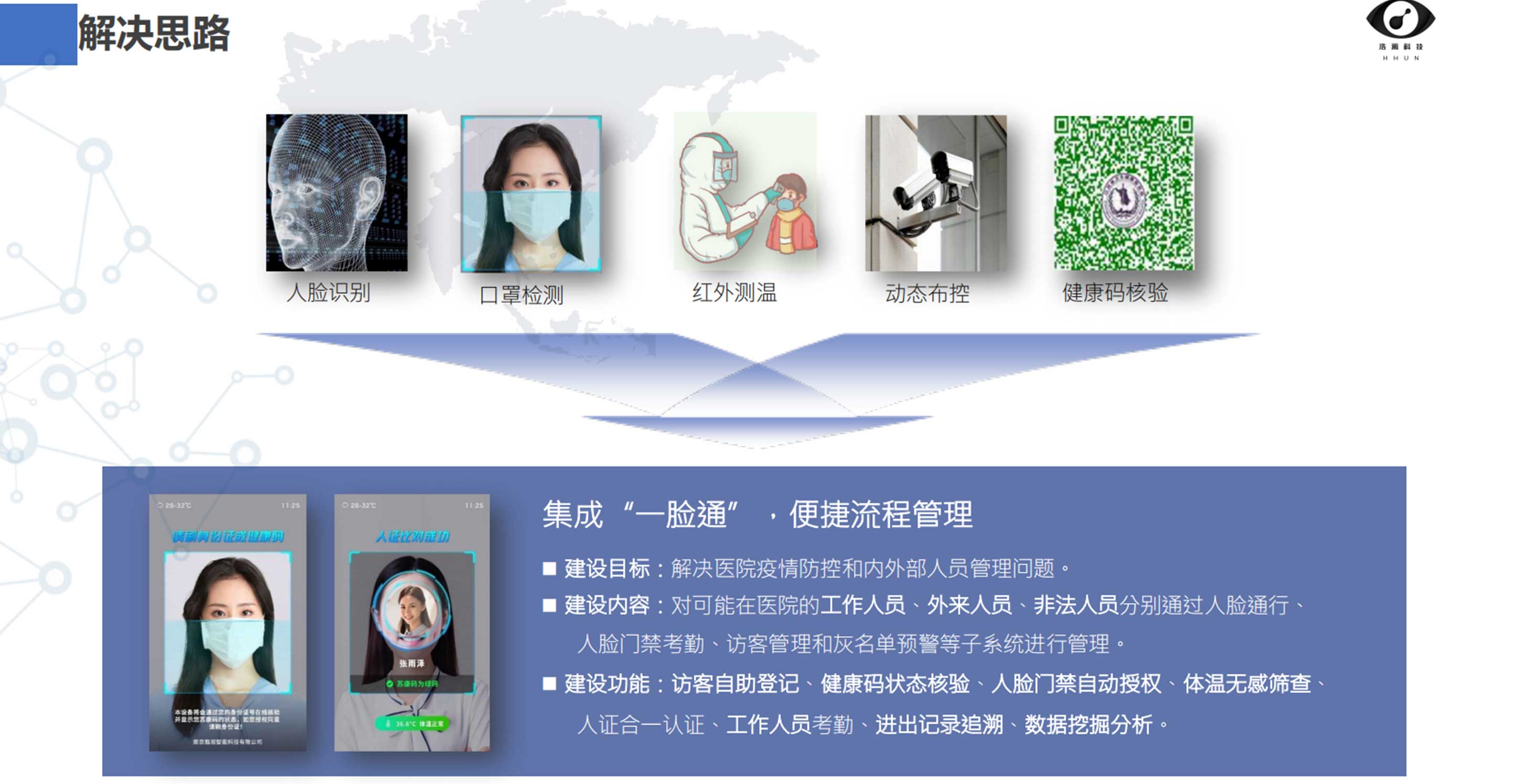 浩瀚科技基于人脸识别技术,加强对医院等特定区域人员进行出入管控,节约人力成本,提高应用场景的智能化科技化水平,提高管理能力,增强防疫防控工作效果。