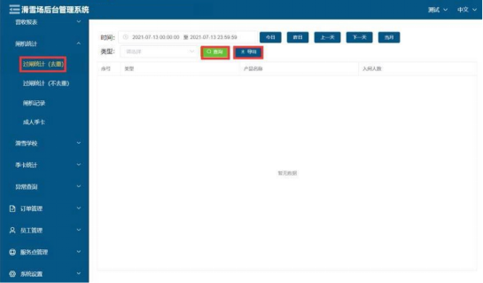 9.1.1 报表管理— 闸机统计—过闸统计(去重) —显示